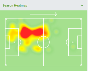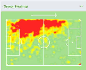 The 21-year old marauding wing-back has impressed so far this season at Forest Green Rovers (1st in League Two), making a total of 21 appearances, scoring 2 goals and providing 9 assists. Used primarily on the right side of a 3-5-2 wing-back system, Wilson is no stranger to putting in a shift (see his heatmap below), showcasing excellent stamina and endurance.